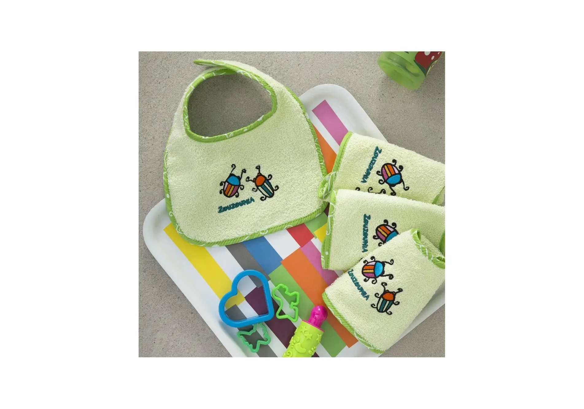 Ρωτήστε μας εδώ για το προϊόν Σετ 4 τμχ. Σαλιάρες Βρεφικές, Μπάμπουρας, 20x29cm, Πράσινο ZOU-BD-310