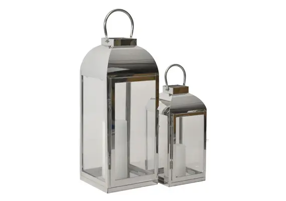 Φανάρια από ανοξείδωτο ατσάλι με γυάλινες επιφάνειες που επιτρέπουν στο φως να διαχέεται ομοιόμορφα κ χειρολαβή για ευκολία στη χρήση.